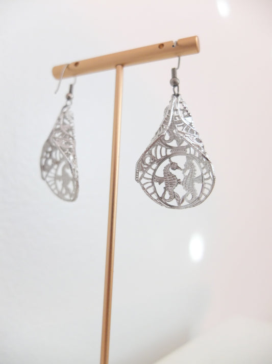 Vintage Silver Tone Seahorses Dangle Earrings